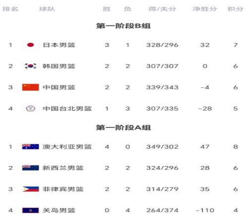A組第四輪方面,澳大利亞93-66大勝菲律賓,新西蘭99-67大勝關(guān)島。