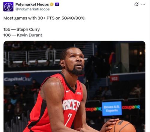 同時(shí)本場(chǎng)比賽杜蘭特效率再度達(dá)到“180俱樂部”標(biāo)準(zhǔn),即三項(xiàng)命中率至少達(dá)到50/40/90%。