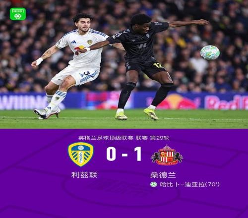 北京時(shí)間3月4日英格蘭足球超級聯(lián)賽第29輪,利茲聯(lián)主場對陣桑德蘭。下半場羅頓進(jìn)球因越位被吹,哈比卜-迪亞拉進(jìn)球打破僵局。最終比分利茲聯(lián) 0-1 桑德蘭。