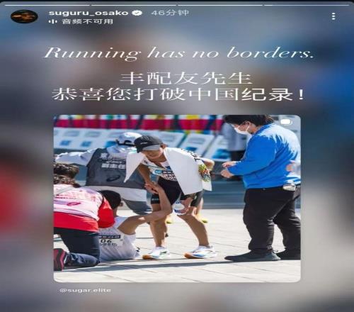 賽后,何杰也在社交媒體上恭喜了豐配友,“馬踏東京,中國馬拉松進入了205的時代,豐配友太硬了,硬剛兩位日本最頂尖的選手,祝賀豐配友,又見證了一個新的時代,我們是對手同時也是戰(zhàn)友。”