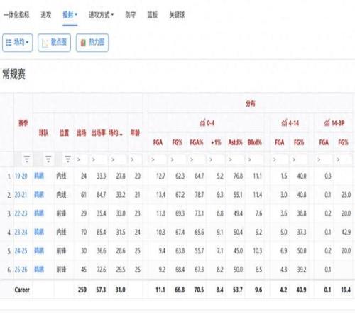 首當其沖的就是進攻手段需要豐富,生涯第6年的胖虎(錫安外號)0-4英尺出手比重依舊很高,本賽季場均9.2次近框作業(yè),中距離和三分加起來只有4.4次。198公分胖虎雖然有蠻力但身高不足,在這個人人有投射的年代,沒有投籃的他很吃虧。
